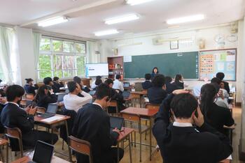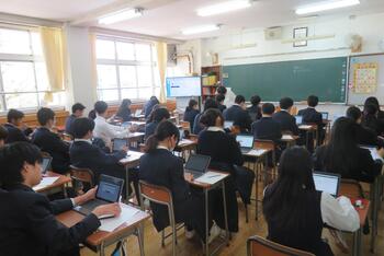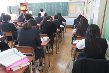 今日の午後に3年生は、英語3技能(読む・聞く・書く)と質問紙調査(意識調査)を実施しました。