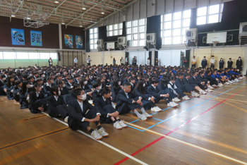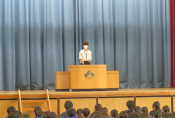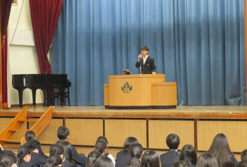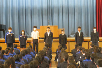 最初に、生徒会役員の紹介があり、続いて生徒会長の話、