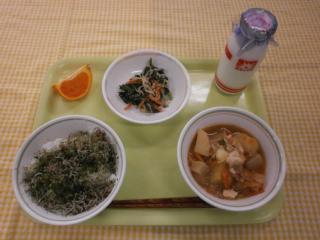 27日(水) 玄米ごはん のりしらす 千草焼き 野菜のおかか和え じゃがいものみそ汁
