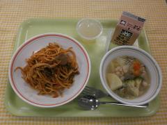8日(水) スパゲティナポリタン 白いんげん豆のスープ りんごゼリー コーヒー牛乳