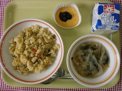 今日は一年で最も昼の時間が長くなる夏至です。関西では夏至にタコを食べる風習があります。タコに含まれるタウリンは、視力の維持に役立ち、肝臓の働きを助けたり、疲労回復効果があるといわれています。野菜がたっぷり使われていて、出汁の旨味がおいしい給食でした。