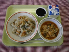 今日の「吹き寄せごはん」には、とり肉、にんじん、