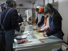 班ごとに作業を分担しながら調理していました。