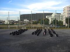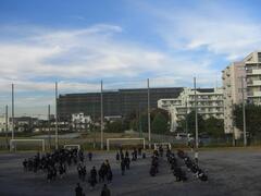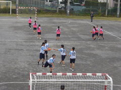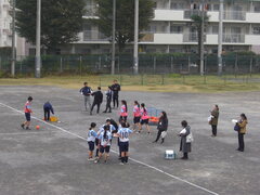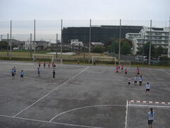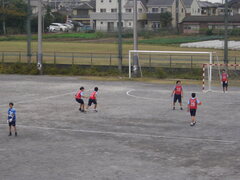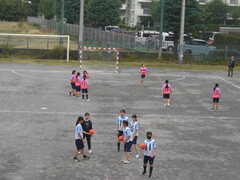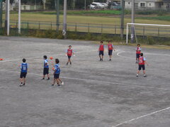 準備体操の後、4つのグループに分かれてパスなどの練習をして、試合をしていました。