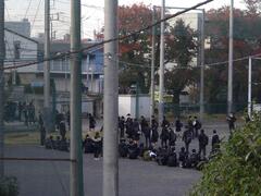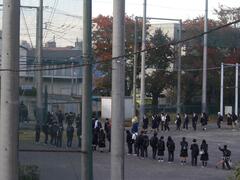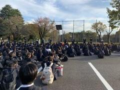 柳沢中の校庭が使えなくなった場合の第二次避難場所への方法を確認し、地区班に分かれて、実際にMUFGパークまで避難しました。