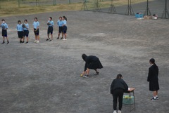 1年生 体育 元気に声かけしながらソフトボールを学習しています。