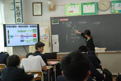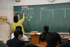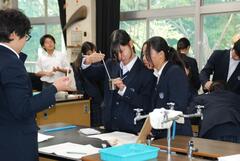 2年生 理科と家庭科 家庭科では12月の調理実習に向けて、調理の基礎を学んでいます。