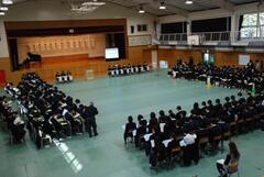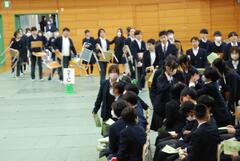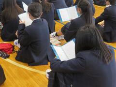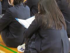 今日は生徒総会がありました。議事規則によると「生徒の目的達成のため」に置かれたものであり、中央委員会、学級委員会、専門委員会よりも上位の最高議決機関となっています。生徒にとっては大切な一日です。様々な案件が提出され、生徒たちは議案書を高く上げ、拍手で賛意を伝えます。最後に校歌斉唱。全校生徒の気持ちがひとつになった瞬間でした。