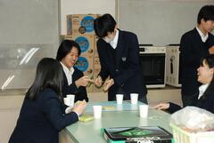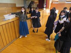生徒と同じように配膳していただきました。さすが、手際がよかったです。
