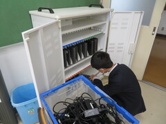 新しいタブレットが届きました。それぞれ番号シールを貼ったり、使えるようにセットアップをしたりしていました。