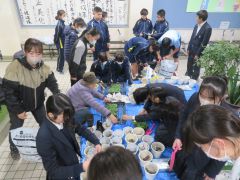 昨日は花ボランティアのみなさんお疲れさまでした。寒いなか地域の方とペチュニアやパンジーを植えていただき、花壇が見違えるようです。来春の卒業式用のお花の種も蒔きました。卒業生が歩く花道を飾るためのものです。今日の理科の実験は音の伝わり方です。昔懐かしい糸電話や音叉を鳴らしたり、ワイングラスの周辺を擦ることにより音を出したり、モールを回す実験です。とても楽しい実験です。理科好きが増えること請け合いです。お昼はChallenge English dayです。思い切って講師の方にチャレンジしてみませんか。