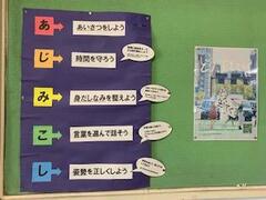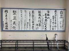昇降口にスローガンが掲示されています。
