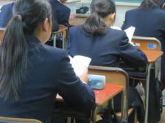 今日は、中間考査の2日目です。写真は、休憩時間や教員の採点の様子、それに3年の学年集会を収めたものです。みんな、普段の実力を十分に発揮できたかな?生徒たちの緊張が一瞬ほぐれた様子が伺えますね。先生たちも採点に大忙しです。学年集会は合唱コンに向けての話。みんな柳中では最後の合唱コンだから、悔いのないようにがんばりましょう。