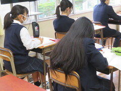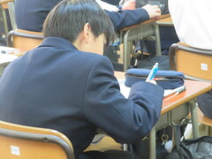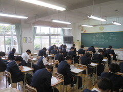 3年生は復習確認テストを行いました。1年生、2年生は落ち着いて授業に取り組んでいます。