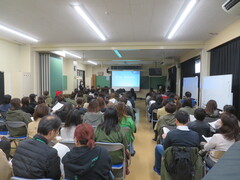 1年生は1月20日からのスキー教室に向けて、学年集会が開かれました。滞在先の写真を見たり、スキーについてのお話がありました。