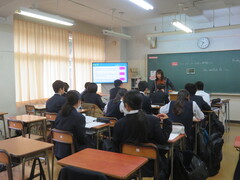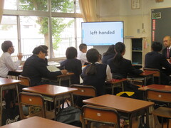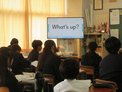 ジェスチャー、質問を英語で書いて会話、早口言葉で発音の練習など、楽しく英語を学習していました。