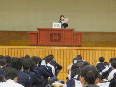 生徒会長より後期委員会に委嘱があり、地域清掃ボランティアについて、お話がありました。