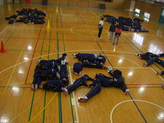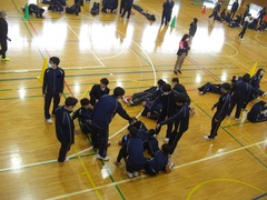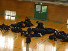 今日は避難訓練がありました。校庭ではちょうどその時、3年の球技大会中でした。その競技大会最中の避難訓練も写真に収めました。もうすぐに3年は卒業です。心置きなく球技大会に全力を集中してくださいね。