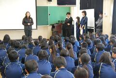 今日は1学年を対象にヒッポファミリークラブの協力を得て、国際理解授業がありました。クラブのみなさんの留学体験を聞いたことで視野が広がり文化に違いがあることを理解できたものと思います。世界に目を向けることができるような大人になってもらいたいものですね。生徒のみなさんの目がキラキラと光っていました。