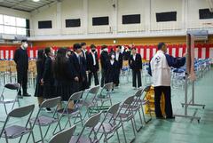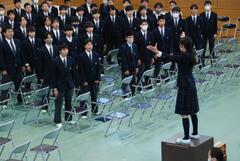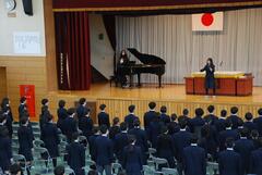 東日本大震災の犠牲者に捧げる黙とうと3年の卒業式練習(3月11日)