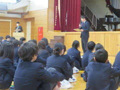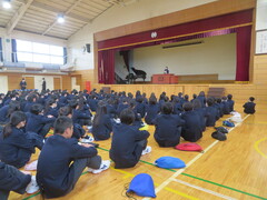 卒業式予行と体育優良生徒の表彰(3月17日)