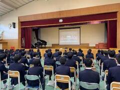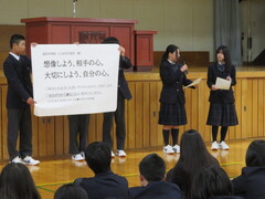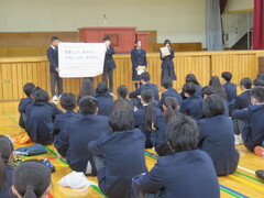生徒会長、委員会のお話のあと、桜プロジェクトで3年生へメッセージを送りました。