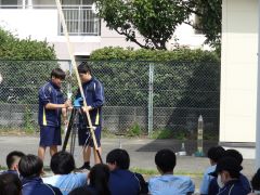 3年生、理科の授業では、圧力の学習でロケットを飛ばしました。