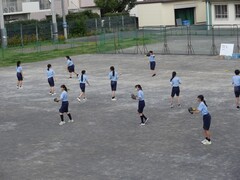 秋晴れの中、3年生の体育ではソフトボールの練習をしていました。
