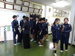 先週の金曜日は、3年は講演会がありました。縄文時代の下野谷遺跡をとおして平和を考えてみるというものでした。なぜ、縄文時代は争いがなかったのか、考えてみる価値がありそうですね。2年は老人ホームや田無神社などでの職場体験です。貴重な職場体験を経験して一回り大きくなったと思います。生徒の成長が楽しみですね。写真は生徒たちの体験終了を教員に報告しているところです。