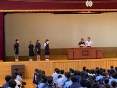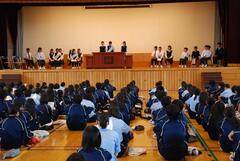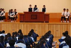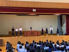 生徒会立候補者の紹介や美化コンクールの表彰を行いました
