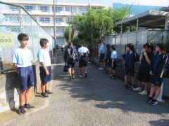 今日の朝のあいさつ運動です。挨拶されると、ちょっとしたことですが気分がいいですよね。1年のみなさんは先輩たちを見習って習慣