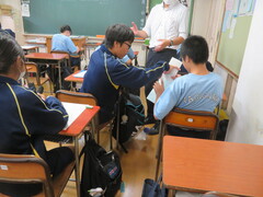 新学期も3日目、そろそろ教員も生徒も通常運転モードです。今日は中央委員会や各種委員会などが開かれました。前期は9月で生徒会などの任期が終了となります。後期へバトンタッチです。今日の技術の授業は、オーロラクロックの抵抗器のはんだ付けの練習です。生徒たちは、はんだこてを器用に使っていました。なかなか上手です。他にも社会、数学、国語の授業の様子を収めました。