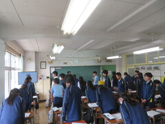 教室で地区班ごとに集まり、整列して下校しました。