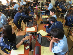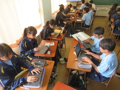 社会では班で調べ学習をしていました。
