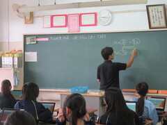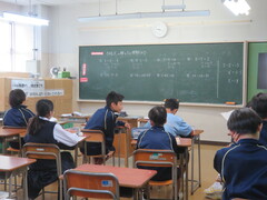 1年生、数学 少人数クラス。2年生 美術、社会、体育。3年生 理科、国語の様子です。