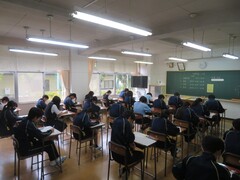 1時間目、3年生の道徳と2年生の社会の様子です。