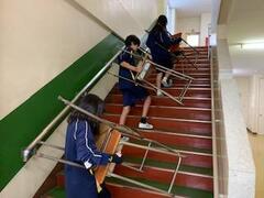 3年生、田無工科高校から、いただいた新しい椅子机と交換しました。